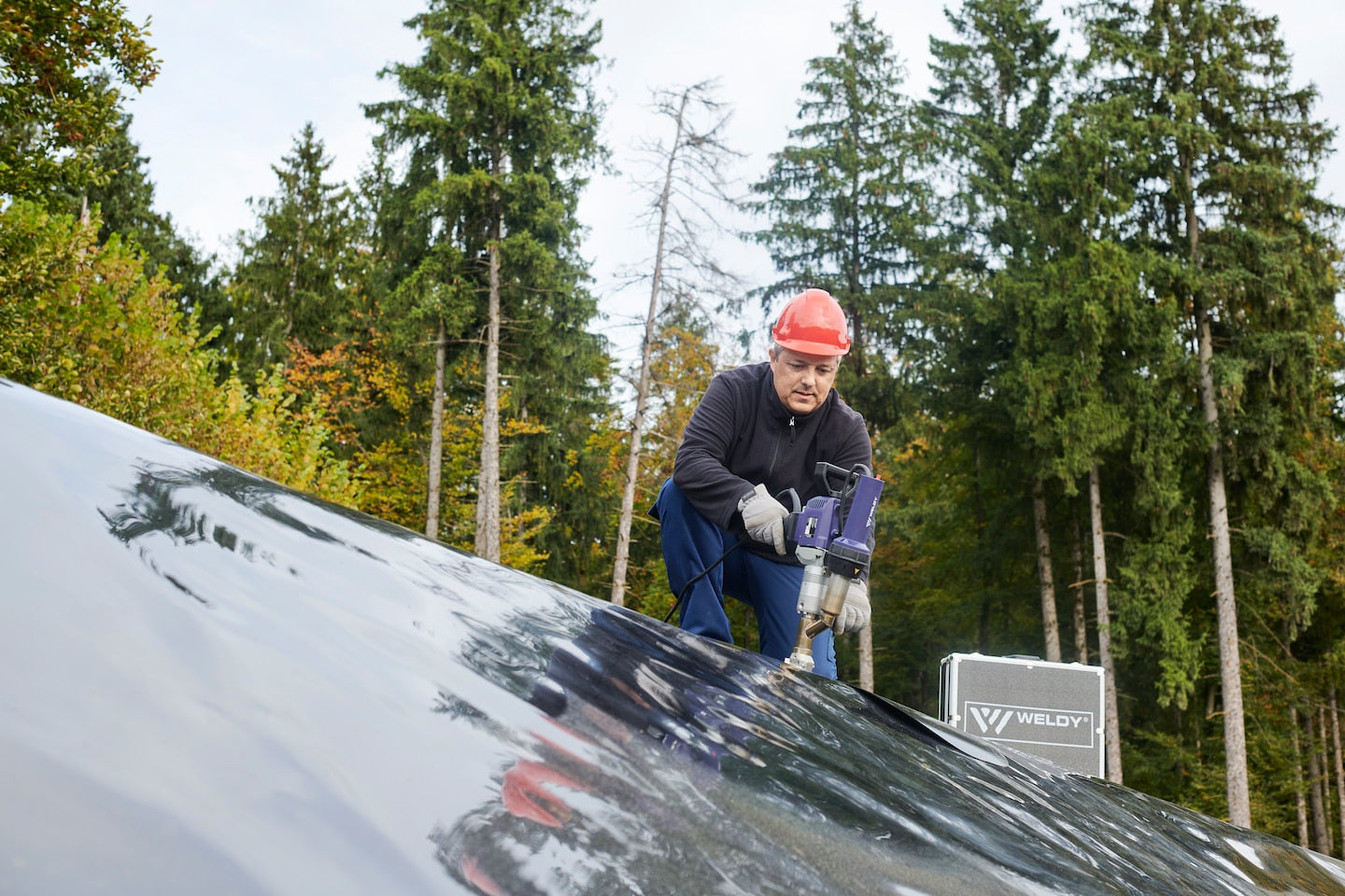 The compact, hand-held extrusion welder, booster EX2, from Weldy is well-suited for plastic welding in tank and container construction. Whenever complete plastic containers and pipes are welded, this extruder excels with its maximum output of 2.5 kg/h. The Weldy booster EX2 processes the common polyolefins or thermoplastics PE and PP. Its multi-position, mountable handle makes the booster EX2 extremely ergonomic.