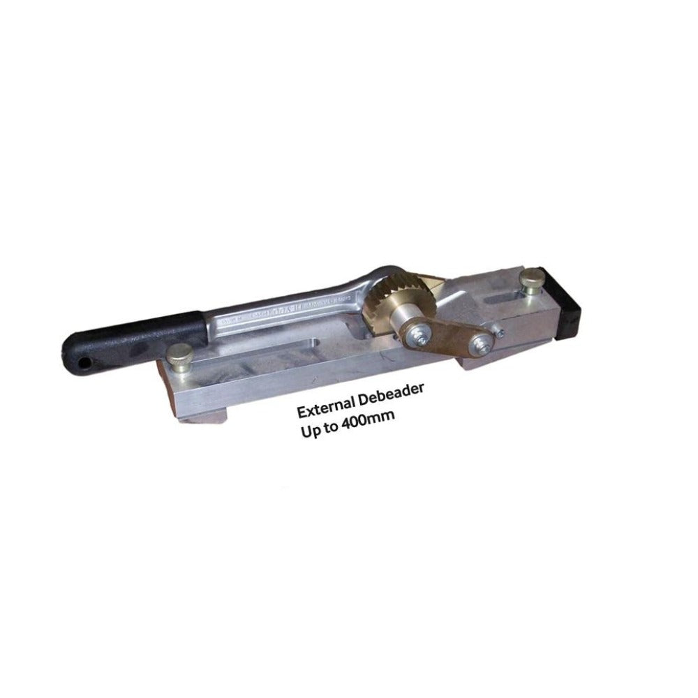 Designed to remove the external bead from a completed butt-fusion welded joint. The tool knocks onto the pipe bead, then alignment blocks slide against the pipe surface to guide it around the pipe. The blade cuts under the bead and the handle helps pull the tool around the pipe, cutting the bead away. Available in three different sizes.