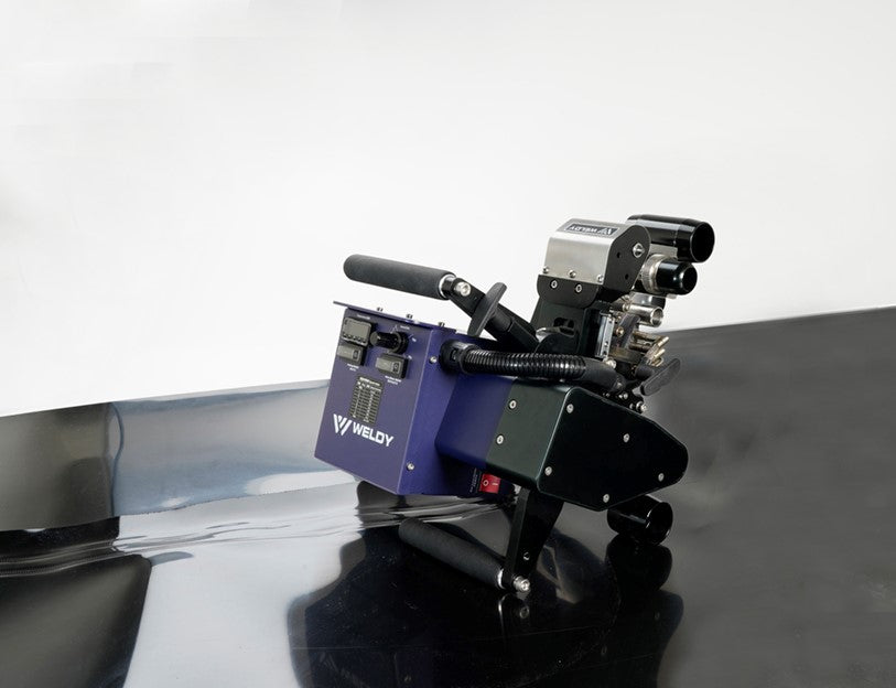 The WGW 300 hot-wedge welding machine from Weldy, a Leister brand, welds thermoplastic geomembranes made of HDPE (0.8 to 2.5 mm), LDPE, TPO, FPO, PVC* (0.8 to 3.0 mm), etc. effortlessly and reliably. The geomembranes are typically used in landfills and mines, as well as for aquaculture, fish farms, irrigation systems, etc. and are permanently welded together. The WGW 300 has been deliberately designed to be simple and robust. The electrical controls are intelligently arranged.